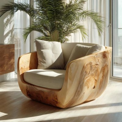 Sculptural Wooden Lounge Chair For Organic Modern Living