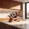 This sculptural wine rack combines functional storage with artistic design, featuring sweeping, branch-inspired curves that organize bottles while adding movement to modern interiors. Its open design allows light to pass through, creating dynamic highlights and shadows. Crafted with expressive wood grain, it serves as both a practical storage solution and a refined decorative piece.