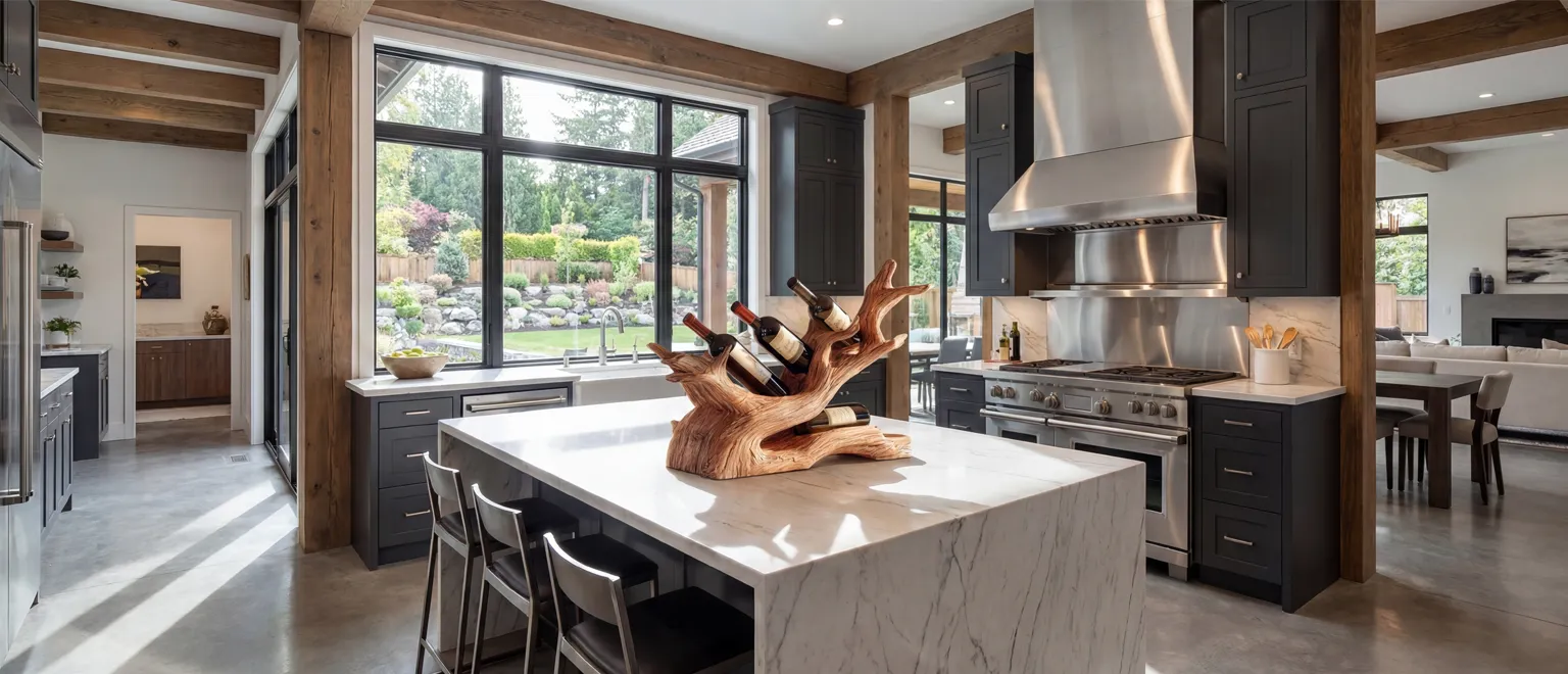 This sculptural wine rack combines functional storage with artistic design, featuring sweeping, branch-inspired curves that organize bottles while adding movement to modern interiors. Its open design allows light to pass through, creating dynamic highlights and shadows. Crafted with expressive wood grain, it serves as both a practical storage solution and a refined decorative piece.