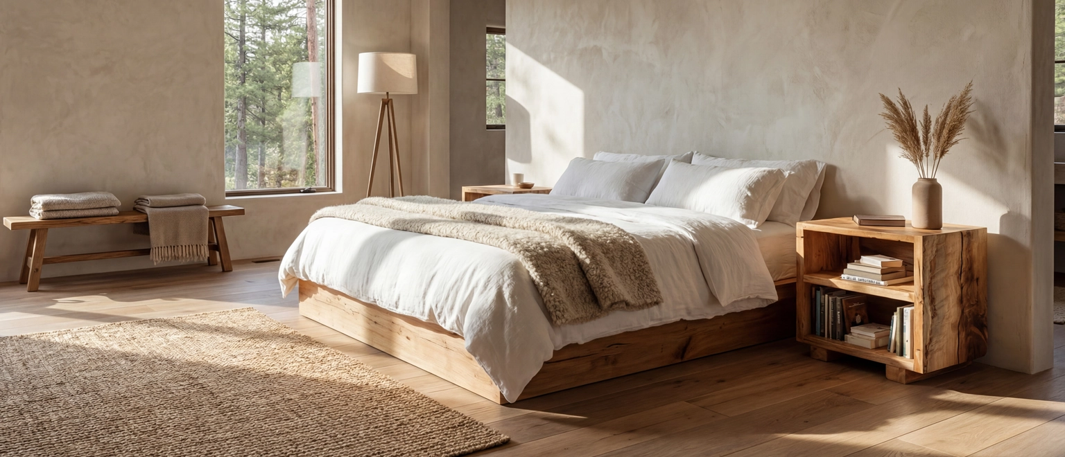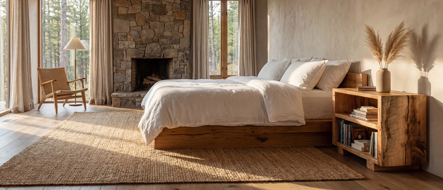 This live-edge solid wood nightstand, with open shelving, brings warmth, texture, and rustic contemporary charm to modern bedrooms and nature-inspired interiors.