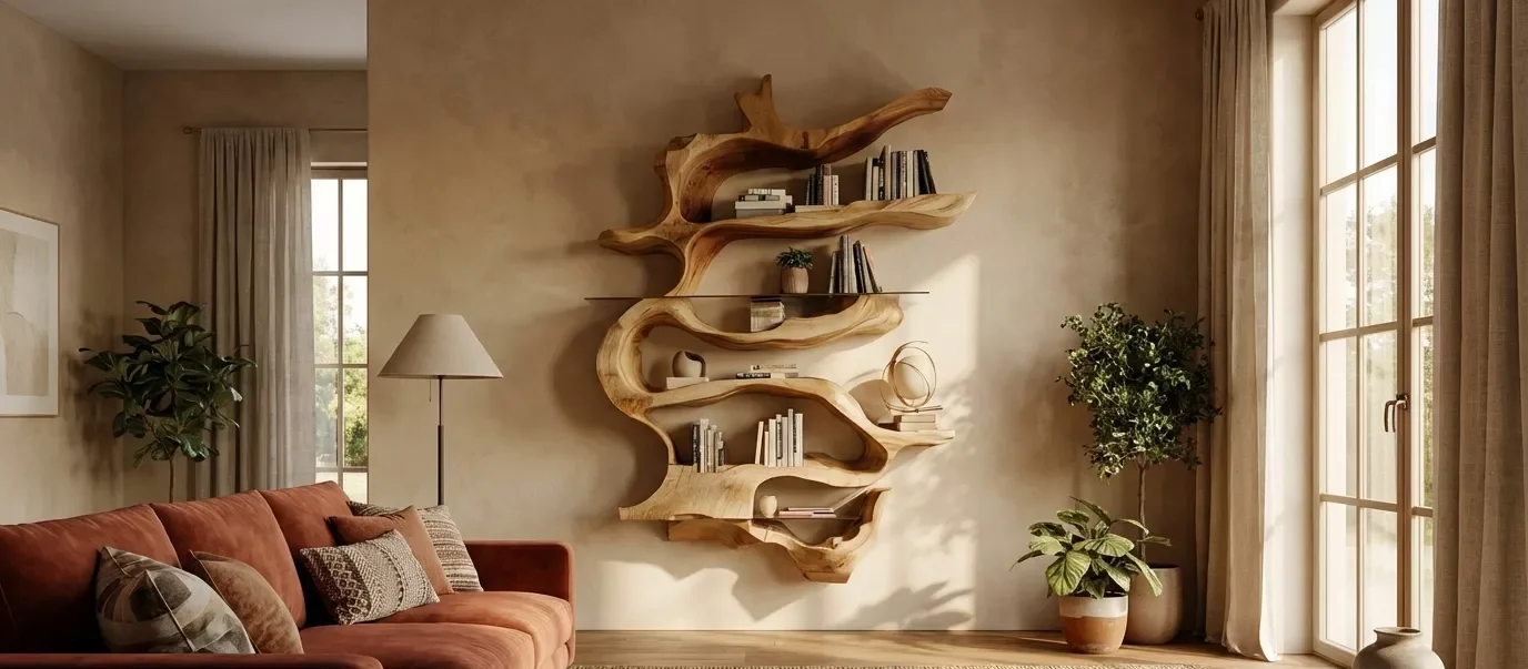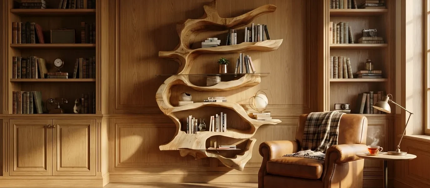 Sculptural Wooden Wall Bookshelf for Modern Living