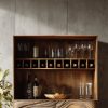 Bar cabinet with wave-pattern front, open shelving, and integrated wine storage for modern interiors.