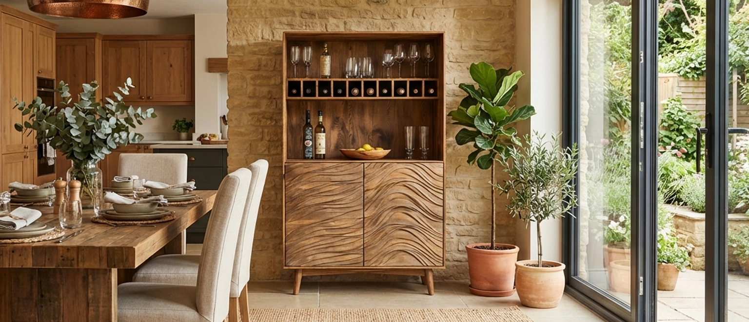 Wave Front Wooden Bar Cabinet for Organic Modern Style
