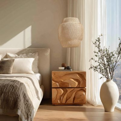 Sculptural Wooden Nightstand For Modern Bedrooms